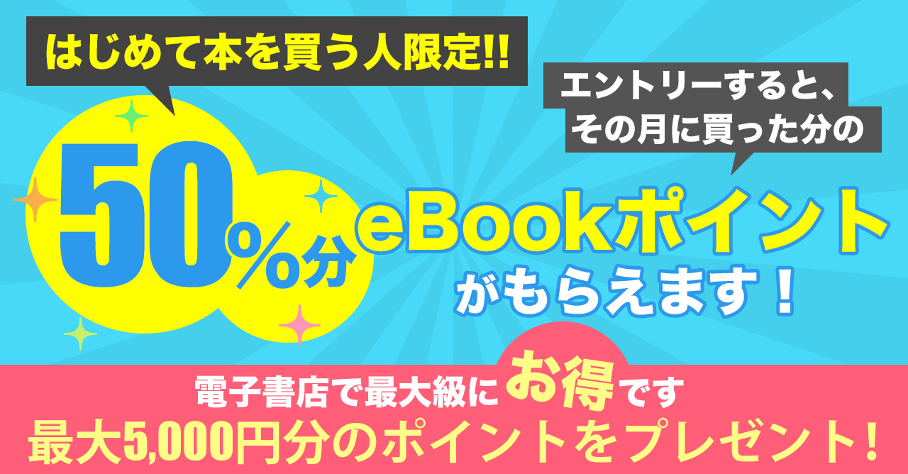 って方には半額で購入できるサービスの中でも一番お得なキャンペーンを行なっている「eBookJapan」をご紹介します!